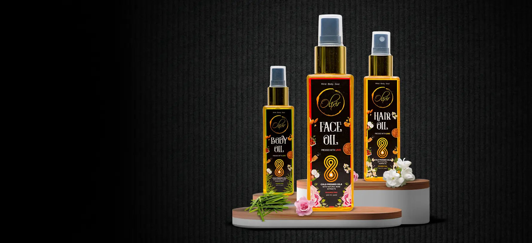 Nourish, moisturize, & heal your skin & hair to the ultimate indulgence with Olixir Face & Body and Hair Oil infused with natural extracts and elements.